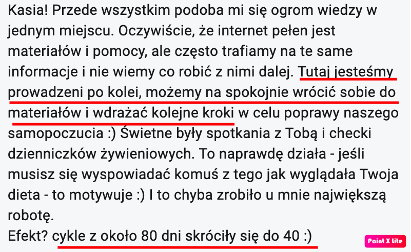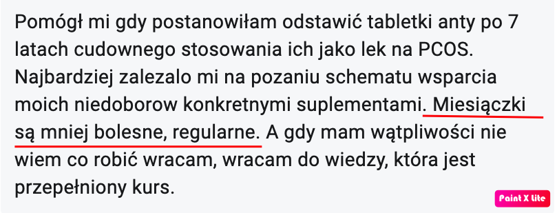 - Dostęp do prywatnego konta na Instagramie, na której znajdziesz już dodatkowe informacje na temat: plamień w cyklu, sztucznym wywoływaniu miesiączki, hirsytyzmie i wiele praktycznych wskazówek