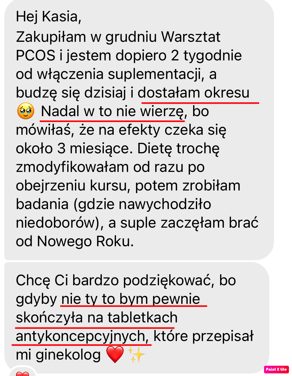 Jestem pewna swoich metod pracy, które rozwijałam i dopracowywałam przez lata. Pomogłam już dziesiątkom kobiet uporać się z PCOS i wiem, że Tobie też pomogę. Jeśli podejdziesz do procesu z zaangażowaniem i będziesz wypełniać moje zalecenia – efekt jest gwarantowany. Zaufaj mi i działaj!